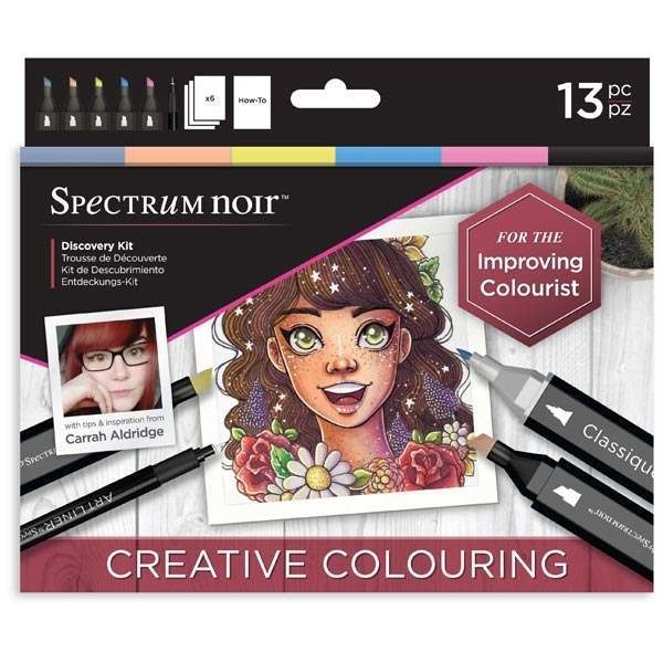 Express your creativity with distinctive designs that will look amazing on or off the page! Learn to layer, mix, and blend colour like never before with gifted young artist Carrah Aldridge in this Spectrum Noir Creative Colouring Discovery Kit. Whether you’re looking for a relaxing activity or want to sharpen your creative skills, this kit is sure to be perfect for whatever creative venture you have planned.