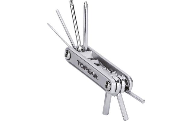 11 function folding tool that can easily handle most repairs. Perfect for everyday cycling. Updated design to secure 8 mm hex tool bit. Included a self-tightening T20 / 2.5mm L-type wrench.